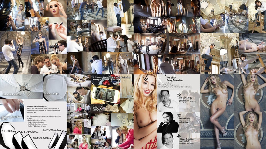 Never seen before! Follow a complete Photo Production Process: Prep & Shoot. 5 on-location sets. Planning set by set, lighting, camera settings, lenses, posing directions, extensive progress details, insights, secrets. 1 model, 5 looks - with Playboy-style photography with Playmate Coxy Dominika!